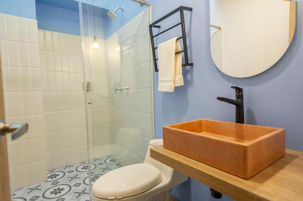 Baño en Hotel Siete Balcones. Diseño y producción de toalleros y entrepaños Artdeco Diseño Interior